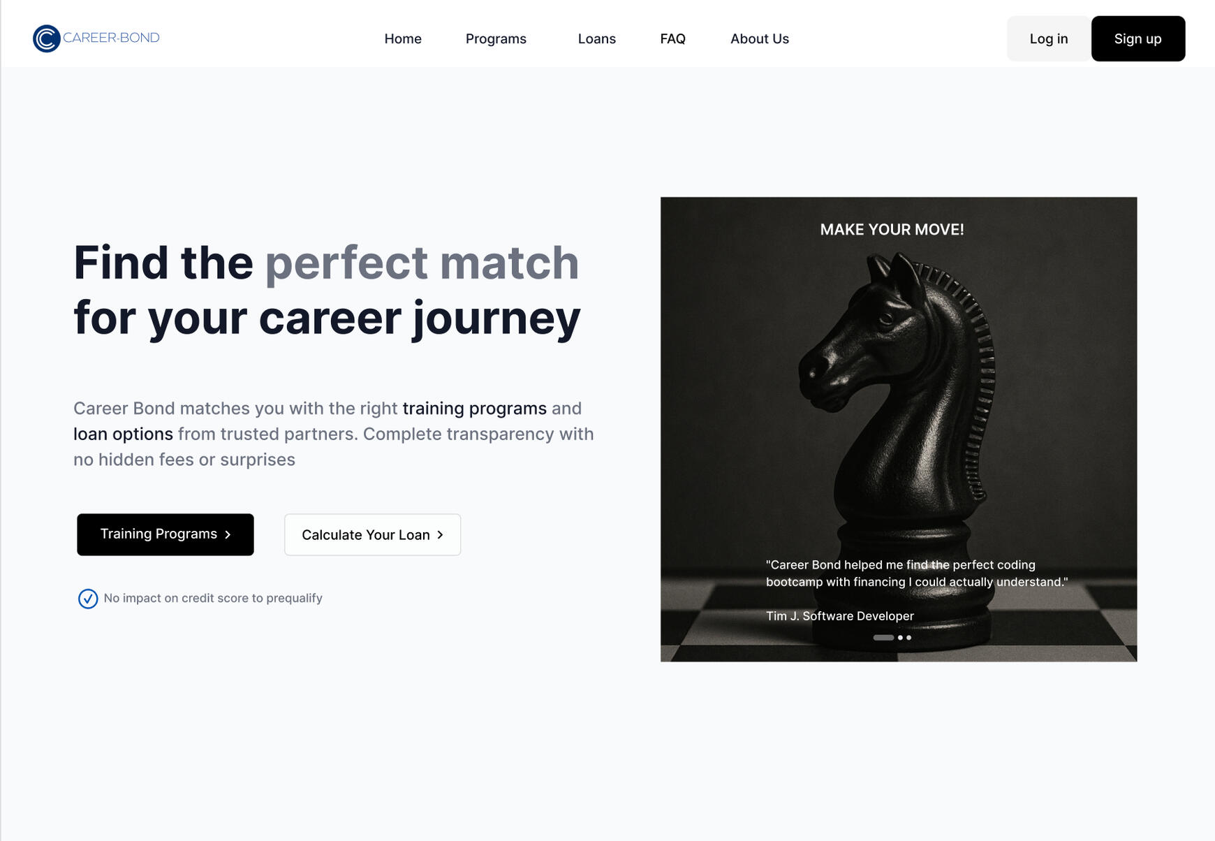 The redesigned landing page introduced clear, trust-building CTAs such as Explore Programs and Loan Calculator, offering immediate value before asking for personal data.