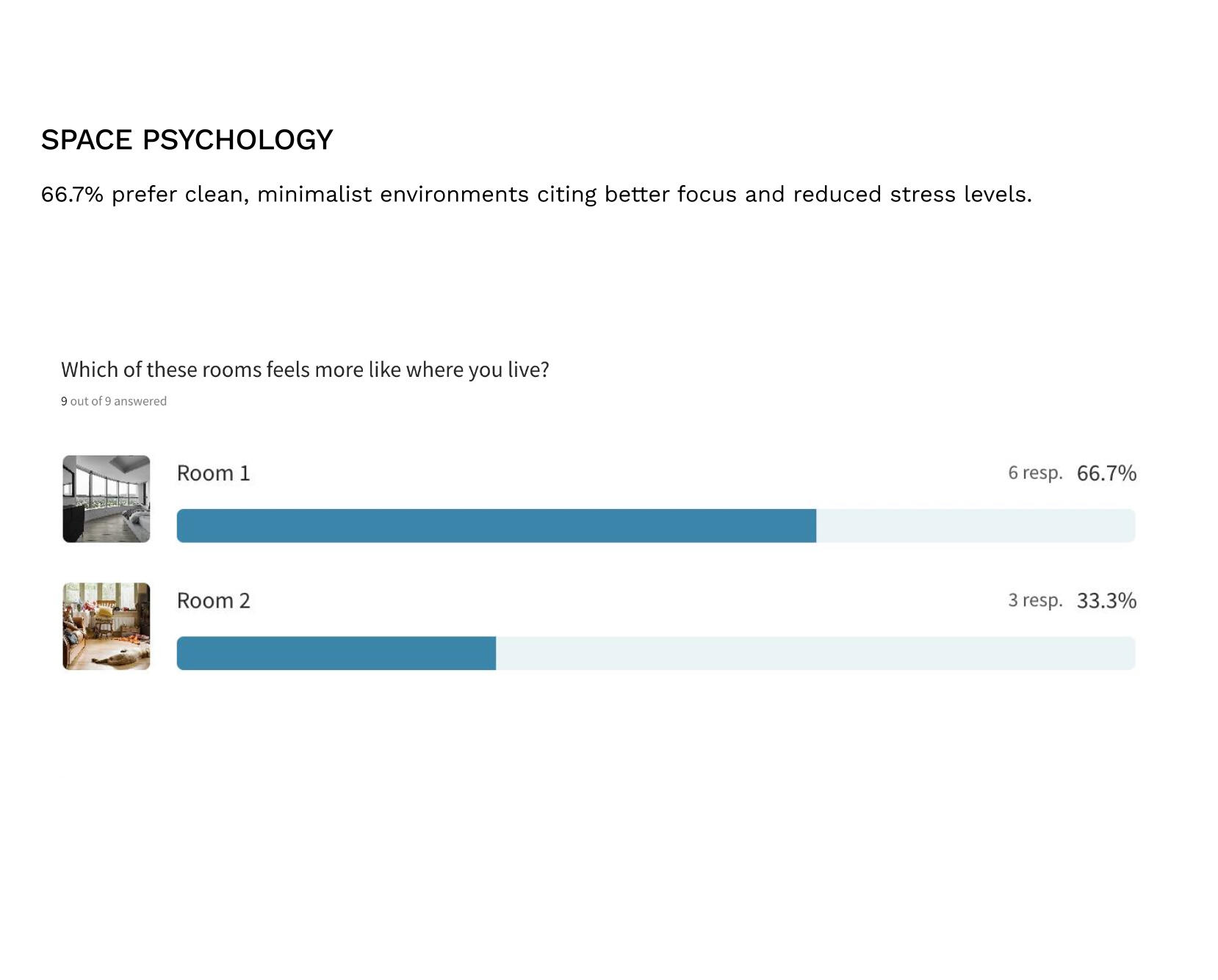 66.7% preferred minimalist environments, linking clean design to wellness and control.